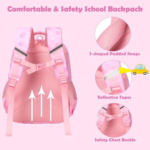 Kimwadalh Girls Backpack with Lunch Box Pencil Case for Elementary School, 3 in 1 Schoolbag with Chest Strap for School Girls