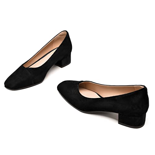 FEMSTEP Womens Suede Leather Formal Slip On Office Square Toe Chunky Low Heel Pumps Shoes 1.5 Inch 6