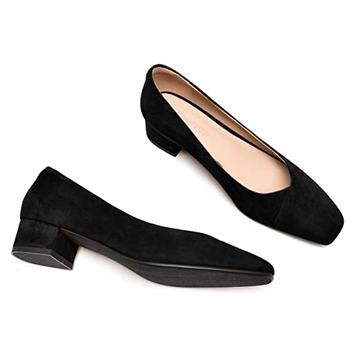 FEMSTEP Womens Suede Leather Formal Slip On Office Square Toe Chunky Low Heel Pumps Shoes 1.5 Inch 1