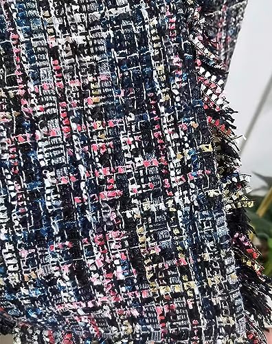 ebossy Women's Double Breasted Pearl Button Tweedy Fringed Jacket Colorful Mid Long Coat with Tassels