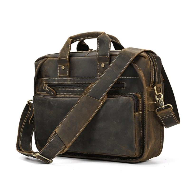 Design: the integrated luggage strap on the adds a layer of convenience to your travel experience - Attach it to your luggage's handle for a hands-free journeyErgonomic: Men's office-to-outing organizer With dedicated tablet compartment. Quick-adjust buckle maintains professional appearance during extended wearVersatile Crossbody Carry: Compact men's travel shoulder bag with adjustable strap, for commuting or weekend trips. Organize essentials in multiple compartments while maintaining a professional look as a sleek laptop messenger bagWith a generous storage capacity,messenger laptop case doesn't just stop at safeguarding your laptop. Its spacious main compartment and various smaller pockets easily house and organize your essential items and accessoriesVersatile Usage: the adjustable and removeable satchel strap, can be used as a messenger bag. Whatever your preference and needs, this bag can easily be tailored to your preferred faultless for everyday use. first-class materials and excellent craftsmanship ensure long-lasting durability.