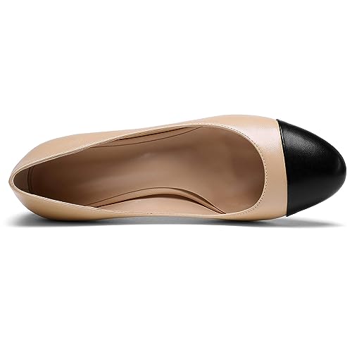 • ✔✔TIMELESS FASHION: These medium heel pumps featur vintage silhouette with constract color stitching, rounded toe and mid chunky heels, mid heel will give you long term comfort and elongate your legs for elegance as well.