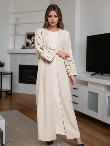 zhxinashu Open Prayer Abaya for Women Long Sleeve Prayer Dress Embroidered Kaftan Muslim Clothes 4