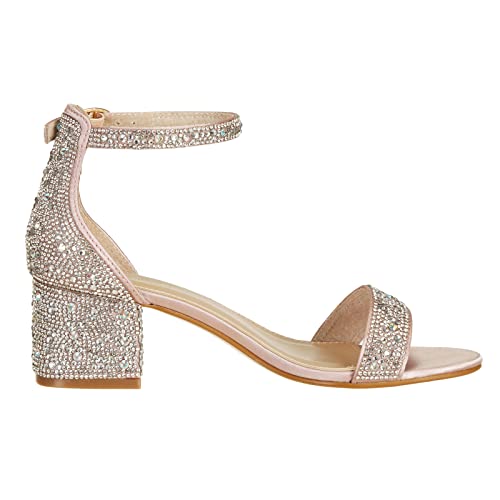J's.o.l.e Women's Sparkly Open Toe Low Block Heel Rhinestone Dress Sandals Wedding Shoes for Bride