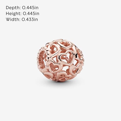 Clasp type: Lobster ClaspGem type: No GemstoneA Symbol of Love: This 14k rose gold-plated charm is shaped with openwork hearts that provide a glimpse of the carrier its worn on, ideal to wear on any bracelet or bangle for more sophisticated styleCompatible with PANDORA Moments: PANDORA Moments is a way to say something about who you are through every charm and bracelet you choose and how you choose to wear itPANDORA Charms: Every one of our hand-finished bracelet charms is like a chapter in the book of your lifePANDORA Rose: If you're looking for luminosity and a warm glow that's flattering to every skin tone, discover the 14k Rose Gold-Plated Collection featuring our rare metal blend that is plated with a romantic pink-colored 14k rose goldOfficial PANDORA: This authentic piece of PANDORA jewelry is ready to gift to your loved ones on birthdays, anniversaries, or any special occasions with an official PANDORA gift box Perfect for everyday use. first-class materials and excellent craftsmanship ensure long-lasting durability.