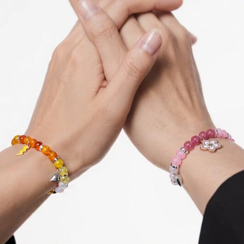 • Matching bracelets for couples:Crafted from premium acrylic beads and natural stone beads, these anime-inspired matching bracelets feature crystal spacer beads for extra sparkle. Each set includes designs with lightning, sakura, and butterfly charms, blending Oni Blade Style and Slayer of Darkness aesthetics for a rare statement.