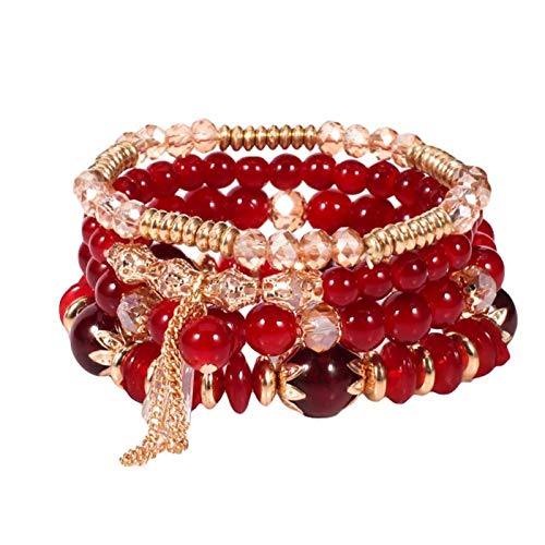 Charm Bracelet for Women, 4Pcs/Set Boho Faux Agate Pearl Tassel Chain Charm Beaded Bracelet Women Jewelry for Valentine's Day Gift Birthday Present
