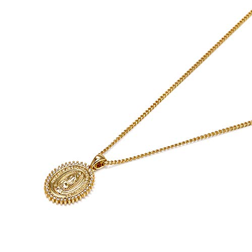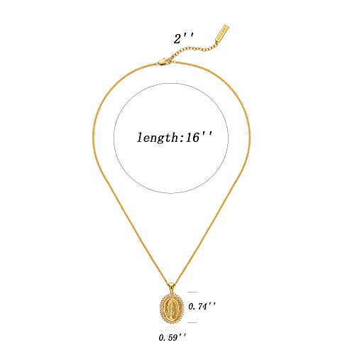 Material: MetalMetal type: Gold-plated-brassClasp type: LobsterChain type: CableGem type: Agate【MATERIAL】Made with 18k gold plated brass. Excellent electroplating technology makes it strong, durable and long-lasting, very suitable for daily wear. Hypoallergenic and lead & nickel.【SPECIFIC SIZE】Virgin Mary necklace-pendant: 0.74 (1.9cm) * 0.59 (1.5cm); chain length 16 + 2 (41cm + 5.5cm). Suitable for most women.【CLOTHING DESIGN】enduring Virgin Mary necklace. Shows gorgeous aristocratic temperament. Mariah is worn as a fashion accessory and you can mix, match, stack or keep it on your own creative side.【PERFECT GIFTS】Saint Genevieve is a generous patron. This necklace reminds us all to lead a prosperous life. Like the Virgin Mary. Good gifts for birthdays, anniversaries, holidays, stockings, graduation, Christmas Valentine's Day, Mother's Day, bridesmaid. Perfect for everyday use. first-class materials and excellent craftsmanship ensure long-lasting durability.
