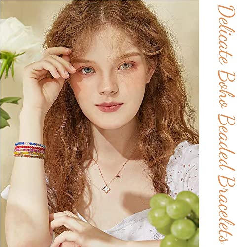 MOZAKA 26Pcs Boho Beaded Bracelets for Women Colorful Stackable Sparkly Crystal Beads Bracelets Multi-Layer Versatile Statement Bracelets Stretch Cuff Jewelry Gifts