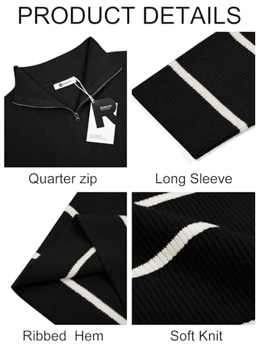 Runcati Mens Quarter Zip Pullover Mock Neck Striped Pullover Sweater Casual Fall Ligtweight Polo Sweaters