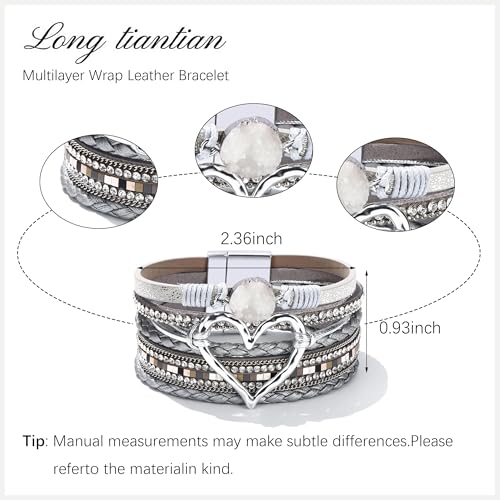 Long tiantian Heart Leather Wrap Bracelets for Women Handmade Stackable Boho Cuff Bangles Bracelet Trendy Birthday for Her
