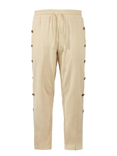 Fabric type: 95% linen/5% polyesterCare instructions: Machine WashOrigin: ImportedClosure type: DrawstringMaterial: These summer linen pants for men are crafted from linen fabric, offering exceptional comfort, breathability, and lightweight wear. This combination enhances the durability of the trousers while providing maximum comfort. mens linen pants, summer pants for men, lightweight pantsDesign: The men's beach pants feature sophisticated rows of button decoration on both sides, adding a fashionable touch to your look while also flattering the wearer's figure. Additionally, deeper pockets on either side cater to everyday carrying needs. mens linen pants, summer pants for men, lightweight pantsFeatures: The drawstring elasticated waistband of these baggy yoga pants provides a unique wearing experience and ensures a better fit around your body. The straight leg design allows for unrestricted movement at the ankles, enhancing overall comfort.Occasions: These loose-fit linen pants for men are versatile enough for various occasions. They are ideal for casual daily wear such as at the beach, during yoga sessions, on holiday outings, or relaxing at home—making them an essential addition to your wardrobe.Notes: These pants are machine washable or can be hand washed. Please note that the buttons on the men's linen pants are purely decorative and do not function as fasteners. Perfect for everyday use. first-class materials and excellent craftsmanship ensure long-lasting durability.