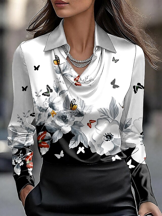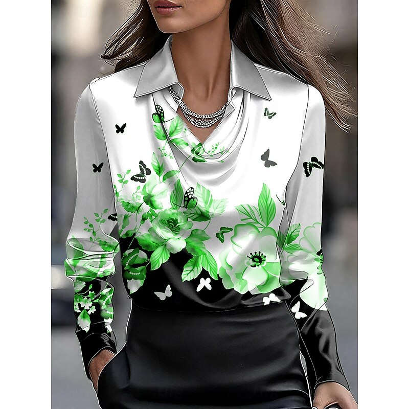 This Women's Shirt Floral Graphic Elegant chic Casual Long Sleeve Cowl Neck Regular Tops Work Party Evening Wear Daily Ruched Draped Red Blue Purple Green Gray Summer Fall combines elegant design with practical functionality. Every detail has been carefully considered to ensure you get the best possible experience. The superior construction means this product will serve you well for years to come.