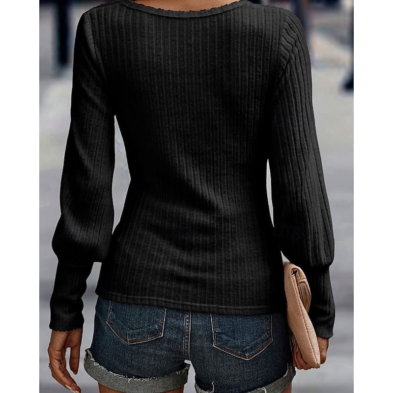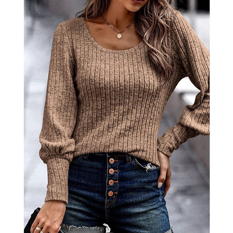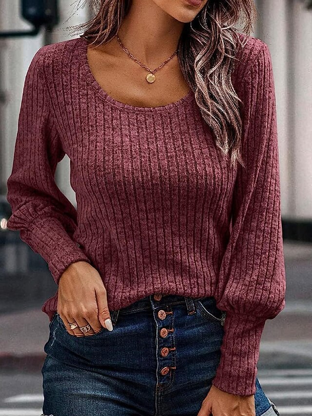 Why Choose Women's Shirt Blouse Plain contemporary Casual Long Sleeve Crew Neck Regular Tops Daily Holiday Going out Black Wine Blue Khaki Light Grey Fall?