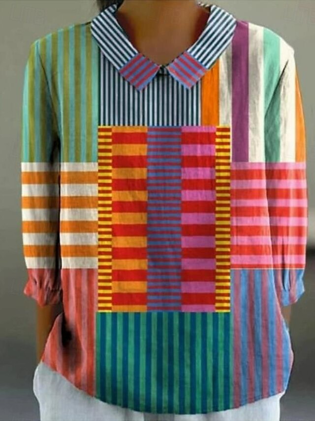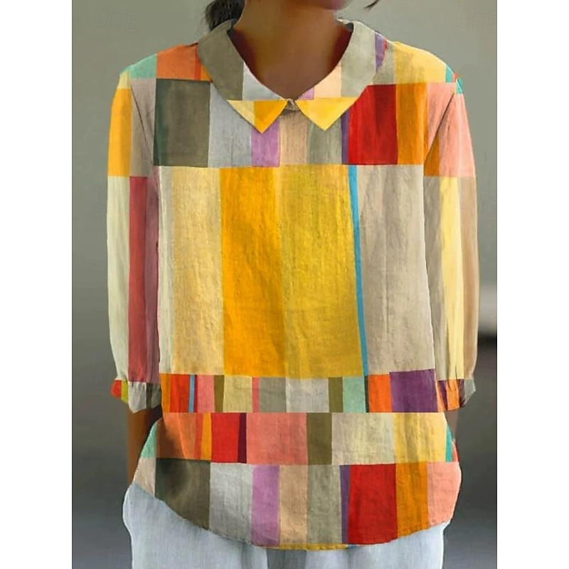 sought-after ! Women's Blouse Long Sleeve Peter Pan Collar Casual Geometric Bohemia Daily fashionable Collar Regular Tops Daily Buttons Print Black Yellow Red Blue Beige Summer Spring