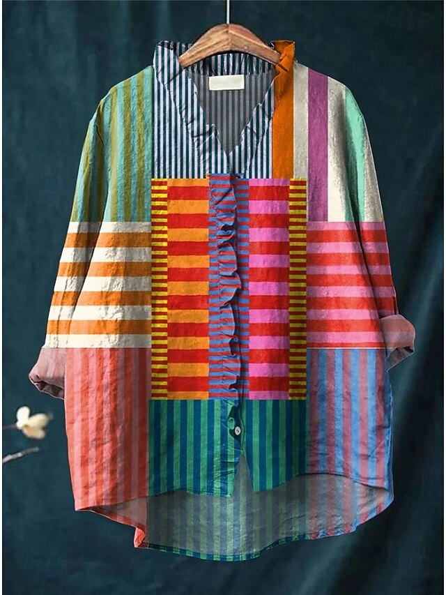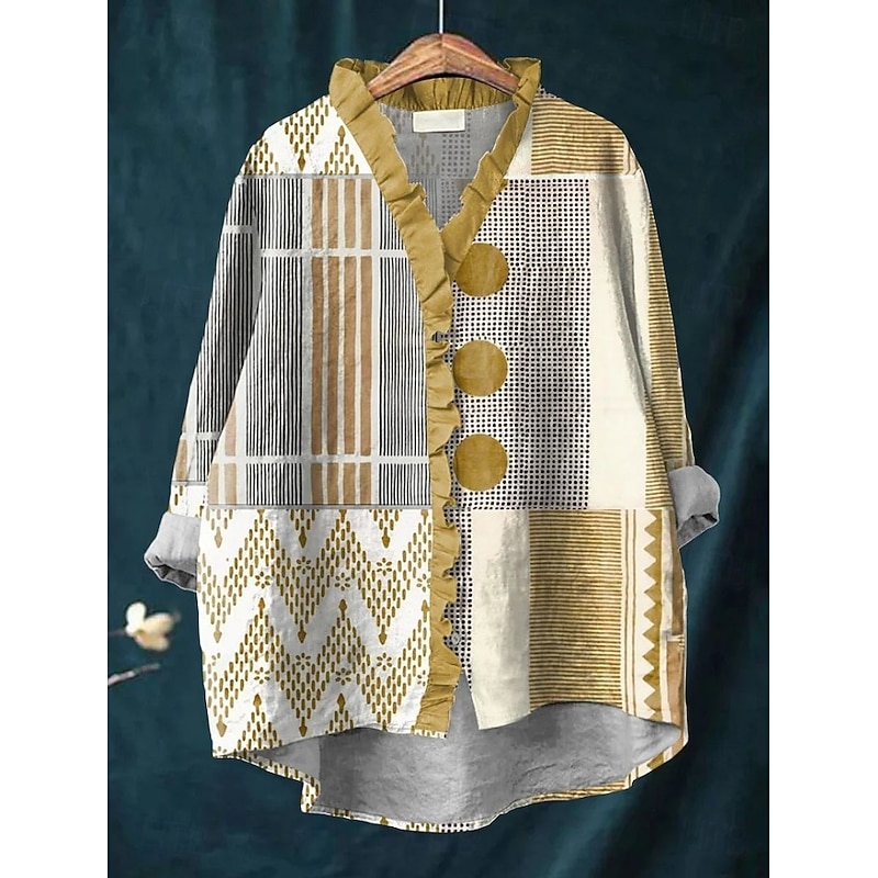 This Women's Boho Shirt Graphic Geometric Elegant Bohemia Active V Neck Regular Tops Daily Holiday Beach Wear Ruffle Denim Blue Yellow Red Blue Purple Fall combines elegant design with practical functionality. Every detail has been carefully considered to ensure you get the top possible experience. The top-grade construction means this product will serve you well for years to come.