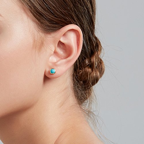 Sterling Silver Turquoise Stud Earrings for Women Cushion Cut 18K Gold Plated Women's Earrings 5