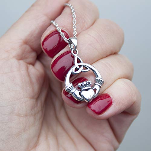 925 Sterling Silver Irish Claddagh Necklace - Trinity Celtic Knot Pendant with 20" Inch Chain - Hands Holding Heart Crown Charm - adore Celtic Jewelry for Women Girls