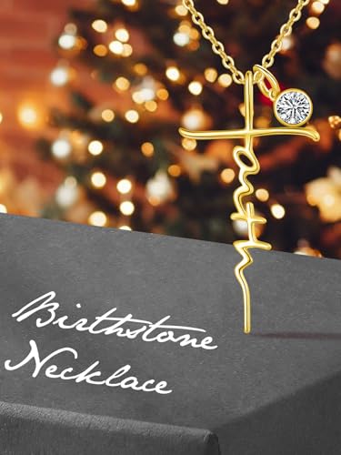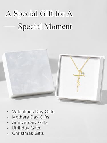 Faith Necklace for women, Wedding Anniversary Birthday Gifts for Wife Her Mom, White Gold/14K Gold/Rose Gold Cross Jewelry, Womens Christian Jewel with Birthstone Pendant