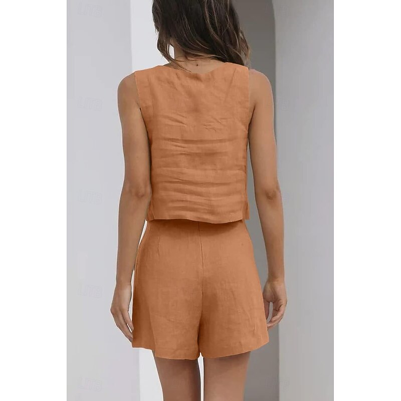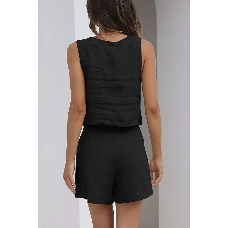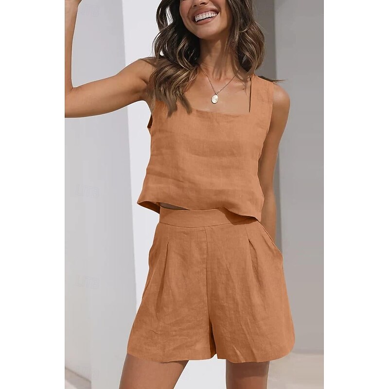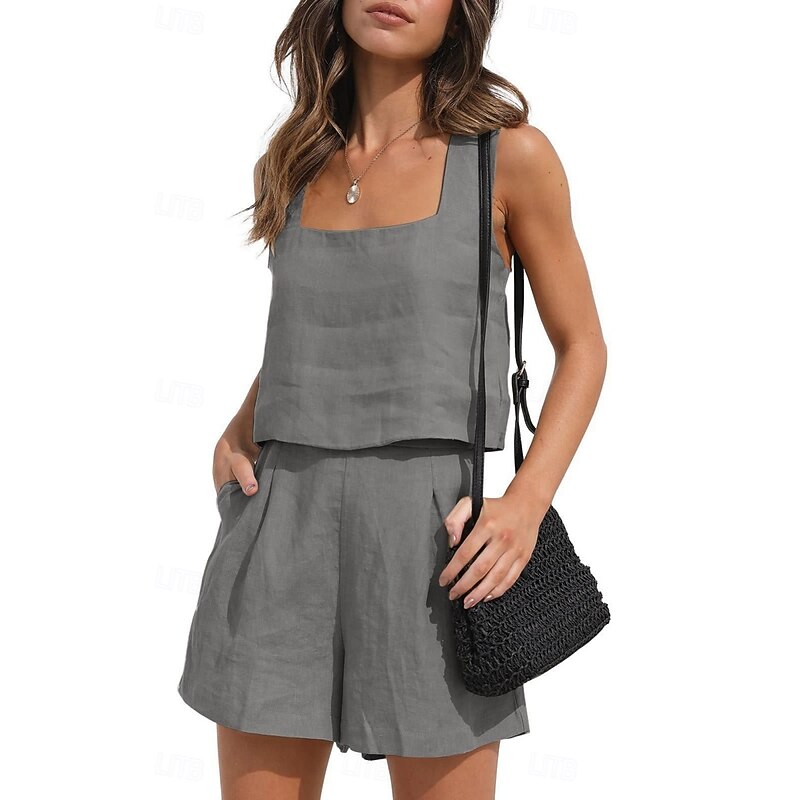 This Women's Active Basic Cotton Linen Sets Sleeveless Square Neck Solid Color Casual Daily Black Pink Army Green Summer Regular Fit combines elegant design with practical functionality. Every detail has been carefully considered to ensure you get the best possible experience. The remarkable construction means this product will serve you well for years to come.