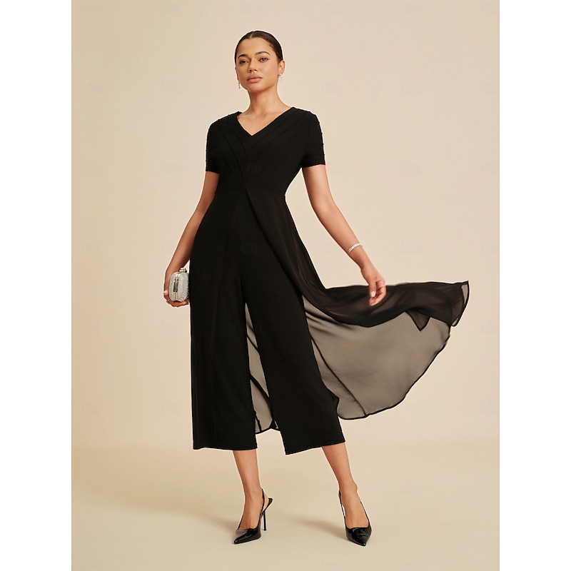 This Women's Jumpsuit Black V Neck Paneled Design Faux Two Piece Flowy Sheer Look Stretch Fabric Casual Spring Summer Fall combines elegant design with practical functionality. Every detail has been carefully considered to ensure you get the top possible experience. The top-grade construction means this product will serve you well for years to come.