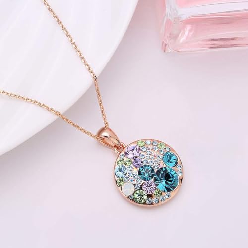EVEVIC Austrian Crystals Round Disc Pendant Necklaces for Women Fashion 14K Gold Plated Hypoallergenic Dainty Jewelry