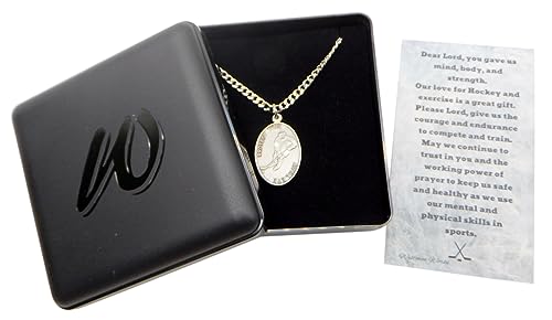 Westmon Works Hockey Pewter Medal Necklace with St Sebastian Stainless Steel Chain Boxed Set with Prayer Card Saint Expressions Premium Jewelry for Athletes