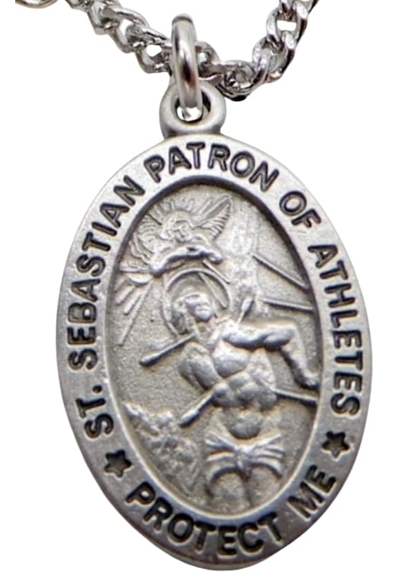 Material: Stainless SteelMetal type: PewterClasp type: LobsterChain type: CableGem type: No GemstoneMaterial: Crafted from high-quality pewter, this medal offers a durable yet elegant finish. Its tarnish-resistant properties ensure that the necklace maintains its brilliance for years to come.Design: The front of the medal showcases a hockey player in action while the reverse side features a detailed depiction of St. Sebastian, together, they offer a unique connection between the saint's virtues and the beloved sport of hockey.Suitable for Sensitive Skin: The stainless steel chain is hypoallergenic, making it safe for all skin types to wear.Dimensions: The medal is thoughtfully sized to be prominent without being overpowering, making it suitable for daily wear or special occasions.Comfortable Length: The chain measures approximately 24 inches, allowing the medal to rest comfortably at the chest level for many wearers.Packaging: The necklace is presented in a tasteful gift box, complete with a card. Perfect for everyday use. High quality materials and excellent craftsmanship ensure long-lasting durability.