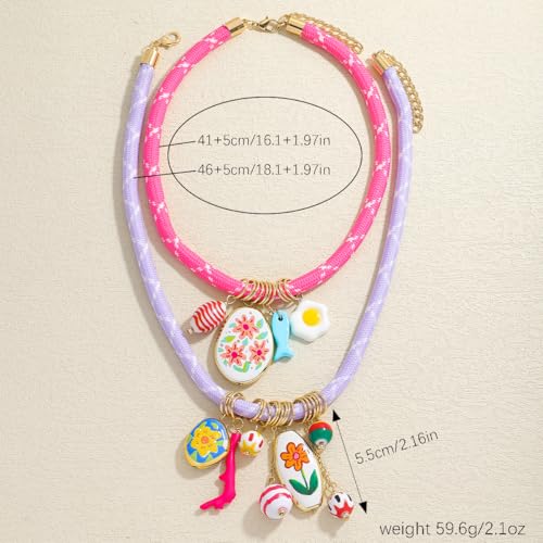 Material: Alloy SteelMetal type: No Metal TypeClasp type: LobsterChain type: RopeGem type: No GemstoneExquisite Dual-Layer Boho Artistry: Elevate your style with this whimsical double-layer charms necklace featuring a porcelain style flower painted pendant. The intricate design blends blooming floral motifs with a playful poached egg and fish charm, capturing bohemian elegance and coastal whimsy. Perfect for beach parties, music festivals, or adding a pop of color to everyday outfits.Adjustable & Versatile Beach Necklace: Customize your look effortlessly with the adjustable extended chain (1.97 in). Layer it with Y2K chains for trendy stacked necklaces or wear it solo as a lightweight, eye-catching accessory. Ideal for pairing with crop tops, linen dresses, or vacation swimwear.rare Gift-Ready Presentation: Packaged in a gift box, this colorful charms rope necklace doubles as a heartfelt gift for birthdays, anniversaries, or spontaneous surprises. Its quirky fusion of nature-inspired elements (flowers, fish, and eggs) radiates joy, making it a memorable token for free-spirited souls.Effortless Bohemian Styling: Designed to complement boho-chic wardrobes, this double-layer rope pendant necklace transitions seamlessly from daytime markets to sunset bonfires. Pair it with macramé bags, floppy hats, or strappy sandals to embody that laid-back, festival-ready vibe.Artisan-Crafted and Travel-Friendly: Crafted for durability, the colorful rope charms necklace features reinforced braided cotton cords and a rust-resistant lobster clasp. The porcelain style pendant is chip-resistant, while the double-layer construction adds depth without bulk—a sturdy yet delicate addition to your jewelry collection. Perfect for everyday use. first-class materials and excellent craftsmanship ensure long-lasting durability.