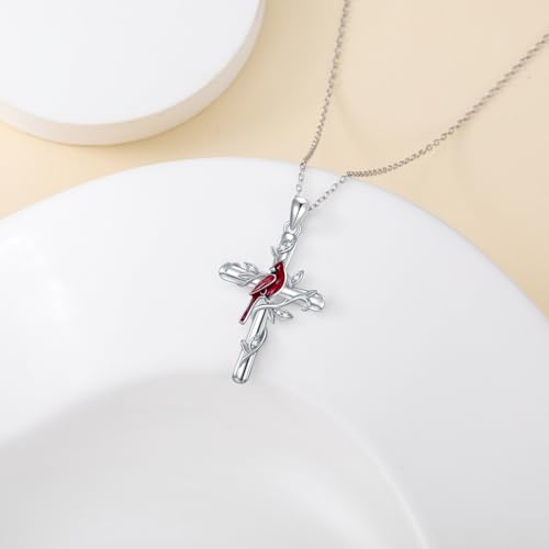 • [Elegant Design] - This exquisite necklace showcases a beautifully crafted sterling silver cross adorned with a vibrant red cardinal. The delicate design symbolizes faith and beauty, with a subtle sparkle from the diamond, making it an elegant accessory for any occasion.