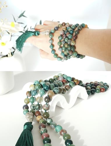 Item display length: 43.2 inchesItem width: 0.7 inchesMaterial: StoneMetal type: ZincChain type: BallGem type: No GemstoneHandcrafted with Care:This 108 mala bead necklace is handmade by skilled artisans with attention to detail, ensuring a high-quality, sturdy product. Perfect for meditation, yoga, or as a meaningful accessory in your spiritual practicePromotes Calm and Focus:Designed to support meditation and mindfulness, this mala helps you maintain focus and calm. Its 108 beads are ideal for prayer, breathing exercises, or simply bringing balance to your daily routinePremium Materials:Made with natural Indian agate beads, featuring a alloy guru bead and a soft polyester tassel, this mala combines beauty and strength, offering a long-lasting, spiritual accessoryPerfect Meditation Size:The circumference 43.2-inch mala with a 3.14-inch tassel is perfect for wearing or holding during meditation. Its cozy size and weight provide a grounding effect for any spiritual or mindfulness practiceReady for Giving:Comes with a premium paper box, making this mala perfect for giving to yourself or loved ones. Whether for meditation, yoga, or as a meaningful accessory, it's a thoughtful present for any occasion Perfect for everyday use. first-class materials and excellent craftsmanship ensure long-lasting durability.