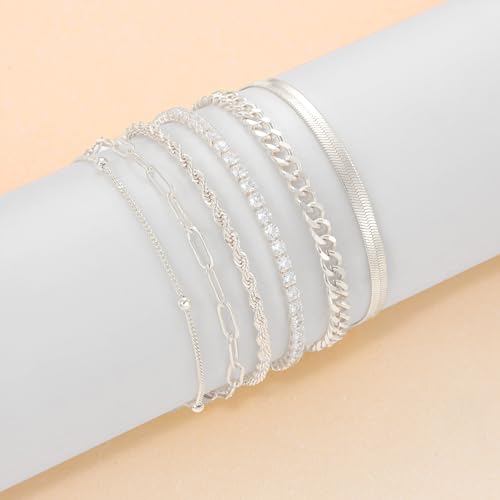 • Set Contents: Set contains ① Cuban link anklet ② Tennis anklet ③ Herringbone anklet ④ Paperclip Anklet ⑤ Rope Anklet ⑥ Satellite Anklet. These anklets are suitable for layering and can be worn alone.