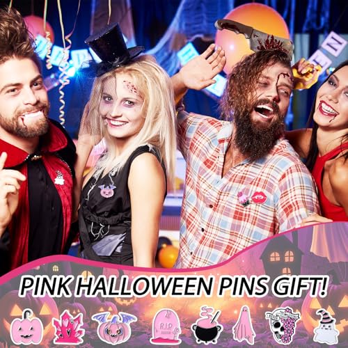 40 Pcs Pink Halloween Enamel Pins Bulk for Backpacks Cute Skull Boo Bat Decorative Brooches Pink and Black Halloween Lapel Pins for Girly Clothes Bags Hat Accessories Gift