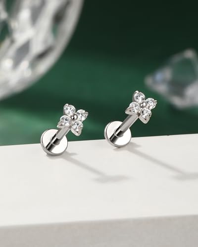 COCHARM G23 Titanium Tragus Cartilage Piercing Jewelry 16g Threadless Helix Cartilage Tragus Earring Flat Back Flower Push Pin Tragus Helix Jewelry for Cartilage Jewelry Women Men 6mm/8MM 16 Gauge Ear Piercing Jewelry 2