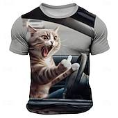 Men's Cat Funny T Shirt Short Sleeve T shirt 3D Print Crew Neck Shirt Fashion Daily Street Daily Black Blue Gray Summer Spring Clothing Apparel S M L XL XXL XXXL 3
