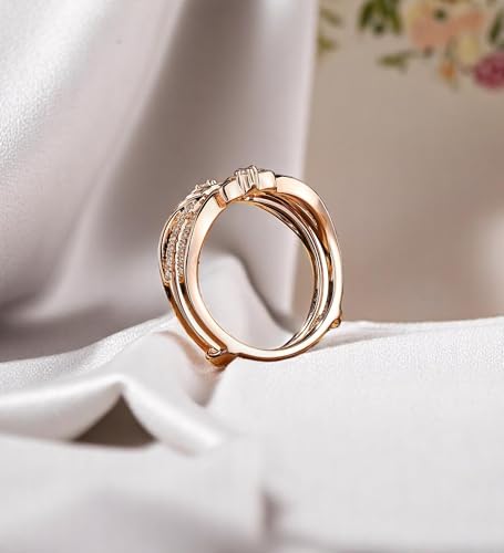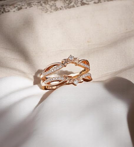 14K Gold Ring Enhancer Guard – Double Band Diamond Simulant Ring Jacket for Women – Elegant Pavé Leaf Design Wedding Ring Wrap