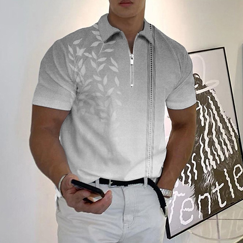 Delighted to present a exceptional men's Hawaiian Polo Shirt in partnership with The Laundry Room! Crafted from breathable polyester this shirt flaunts a gradient leaf print and chic zip polo design Machine washable and excellent for any occasion Each piece like you is distinctive