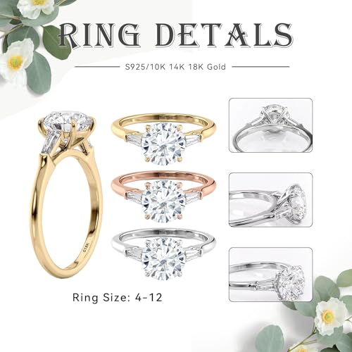 SISGEM 10K 14K 18K Solid Gold Moissanite Engagement Rings Bridal Set for Women, 1-3 Carat Round-cut Moissanite Tapared Baguette Three Stone Wedding Band Set Promise Rings for Her 5