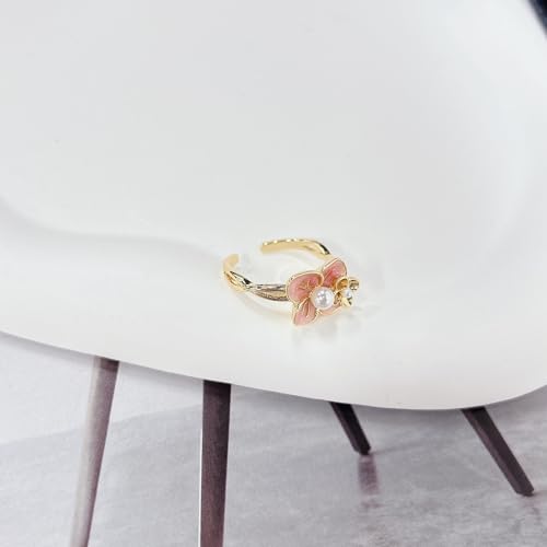sought-after ! Sweet Peach Blossom Flower Pearl Open Statement Ring for Women Dainty Cute Pink Enamel Petals Floral Adjustable Band Gold Plated Finger Rings Wedding Engagement Promise Comfort Fit Stackable Jewelry