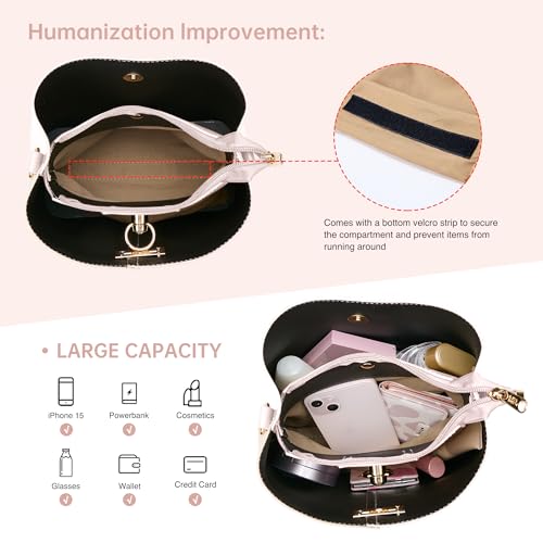 • Safety Closure: Crossbody purse with the magnetic snap and twist-lock closures ensure swift and straightforward access to your belongings, while the zipper closure provides added security for your valuable items