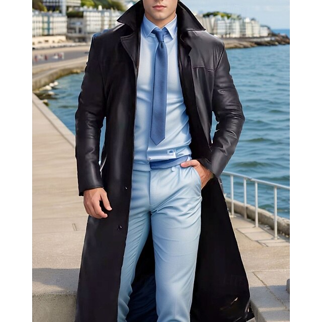 Why Choose Men's Faux Leather Jacket Transition Jacket Trench Coat Long Trench Coat Vacation Daily Fall & Winter PU Leather Thermal cozy Windproof Outerwear Clothing Apparel Fashion vintage Plain Pocket Lapel?