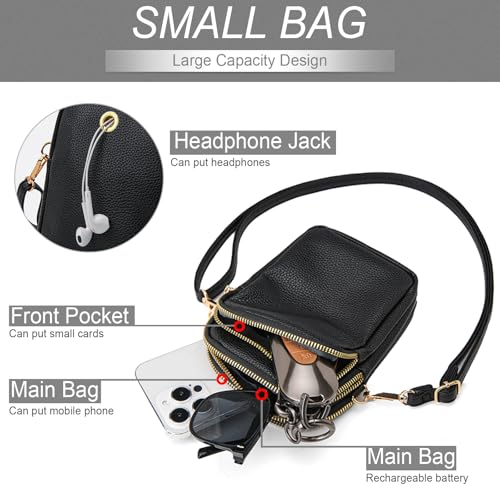 Cell Phone Purse Small Crossbody Bag for Women Men Leather Mini Shoulder Bag Wallet with Card Holder Slot Pouch Neck Strap for every Smartphones iPhone 16 Pro Max 15 Plus 14 13 12 11 X up to 7.5" Black