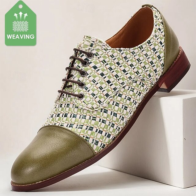 Why Choose Men's Vibrant Green and White Nylon Woven Beaded Lace-Up Oxfords - special Statement Shoes for Social Events and Festivals?