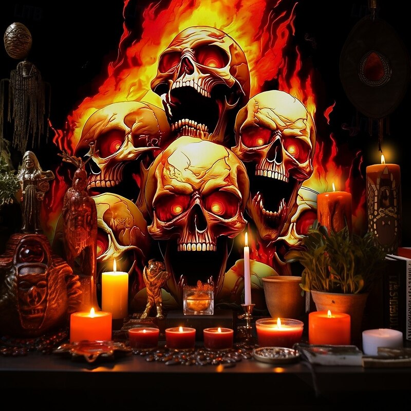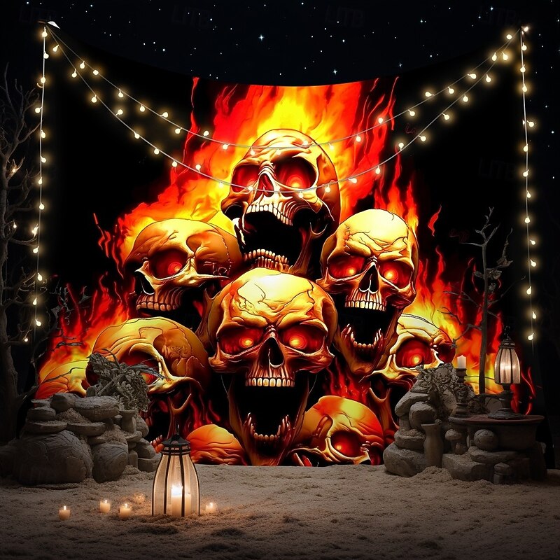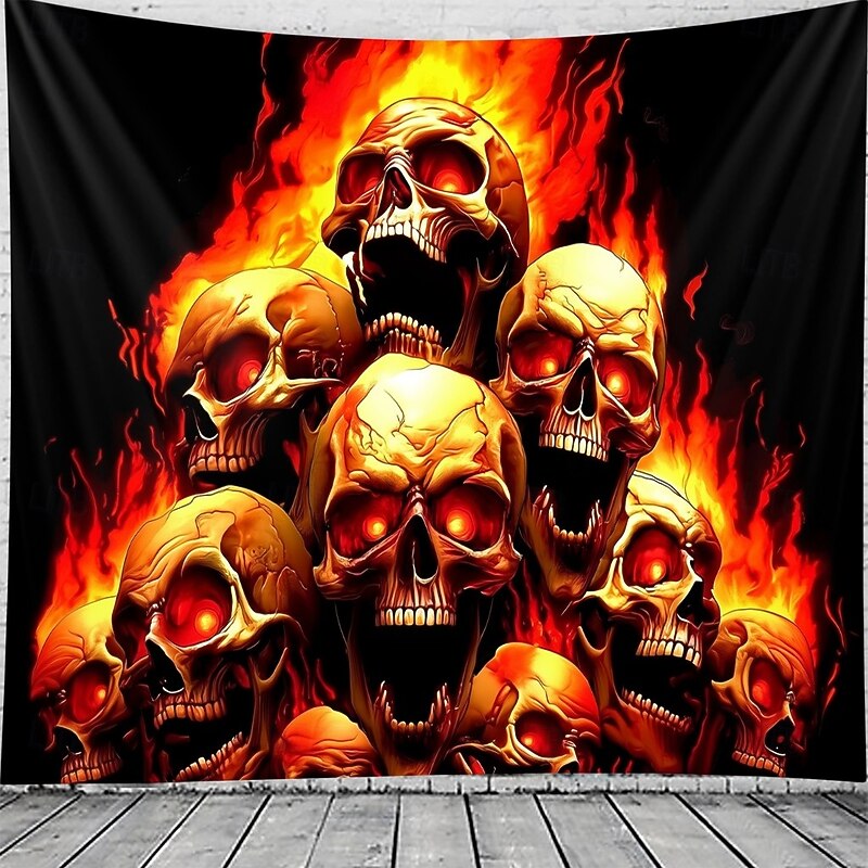 $13.99 - Halloween Flaming Skull Tapestry – Fiery Skeleton Heads Wall Art Backdrop, Scary Gothic Horror Large Hanging Mural Blanket Curtain for Bedroom Living Room 2025 Halloween Home Decoration 2025. Shop for cheap Halloween Wall Tapestries online? Buy at lightinthebox.com on sale today!