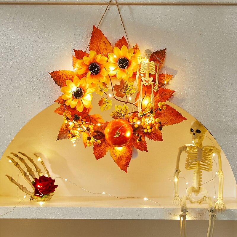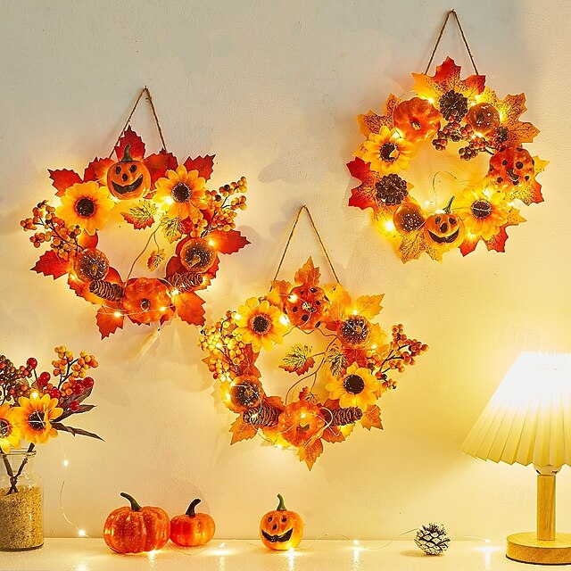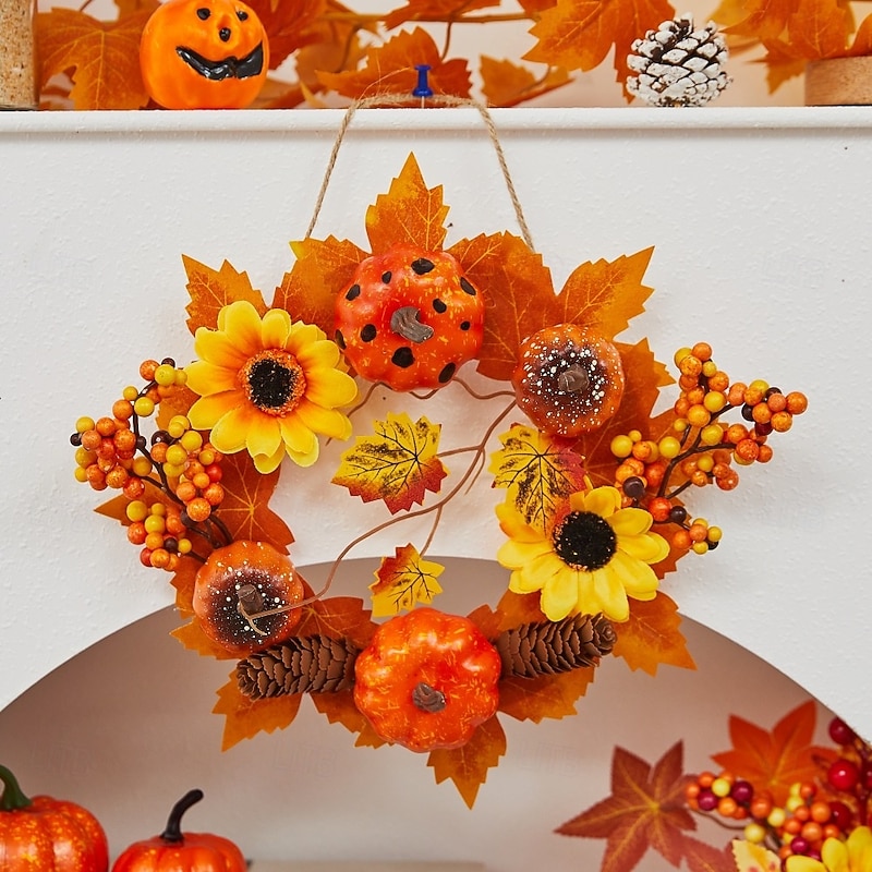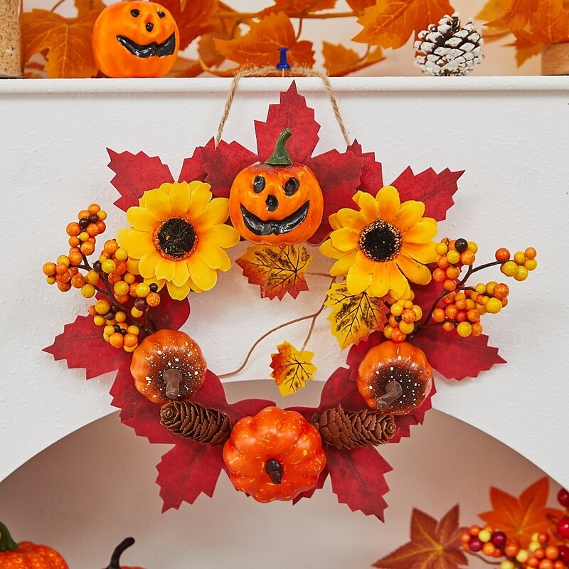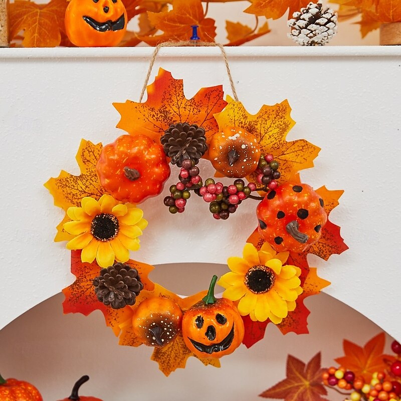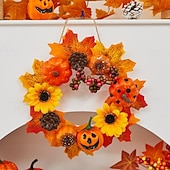 $12.99 - Halloween Fall Ornament with Halloween Wreath featuring Maple Leaves and Pumpkin for Door Hanging, Harvest Festival Scene Decoration for Spooky Autumn Halloween 2025. Shop for cheap Halloween Wreaths & Floral Decorations online? Buy at lightinthebox.com on sale today!