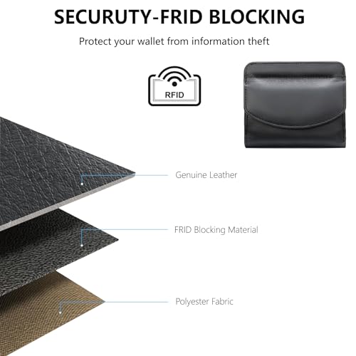 Ultra-Thin Genuine Leather Wallet for Women Bifold Compact Travel Coin Purse Green (Black) 5