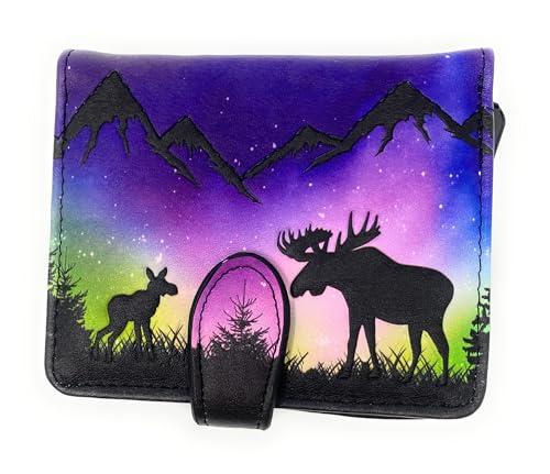 Why Choose Shag Wear Moose Scene Aurora Borealis Small Animal Wallet for Women and Teen Girls Vegan Faux Leather 4.5"?