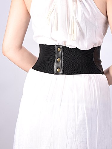 Elastic Wide Waist Belt Tied Corset Waist Band Cinch Belt with Metal Press Button, Black, 72 x 15 cm
