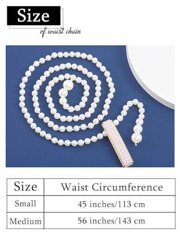 - Material: pearl + alloy + cotton thread. This faux pearl waist chain is a fantastic waist accessory that will not only accentuate your waist but also tighten loose fitting clothes to flatter your figure.