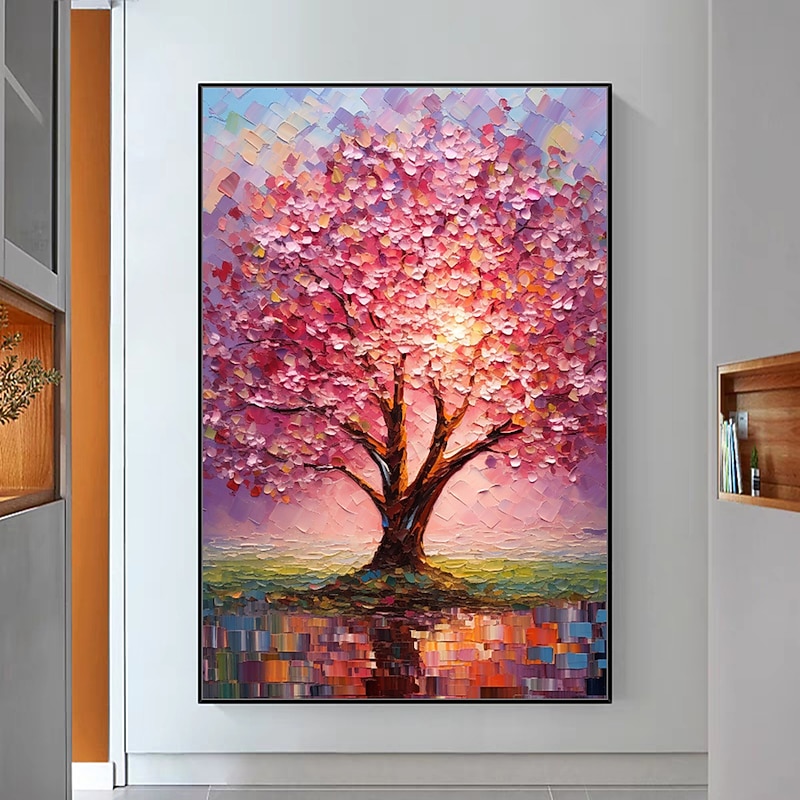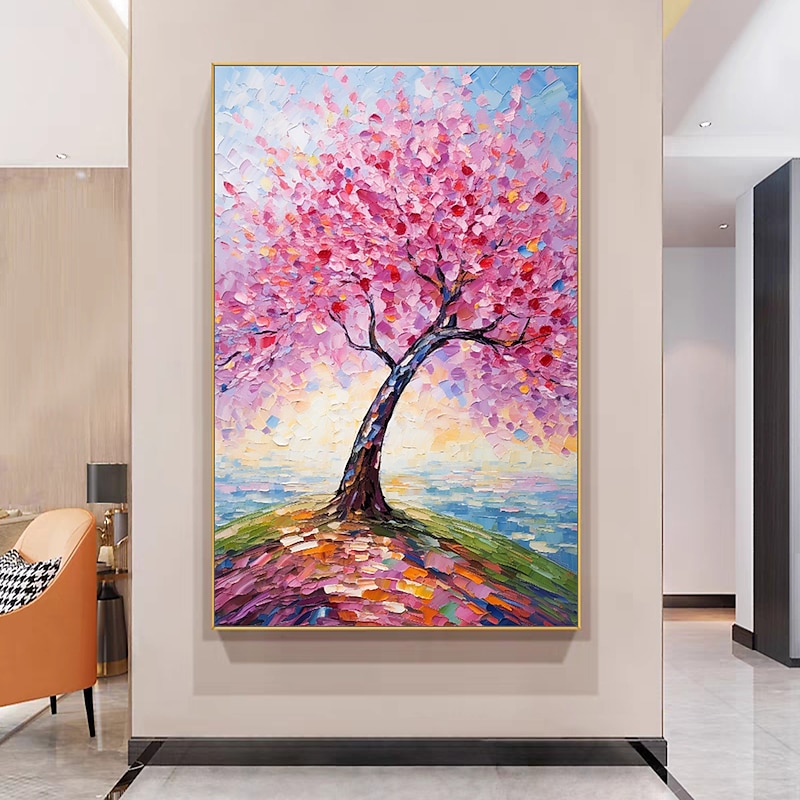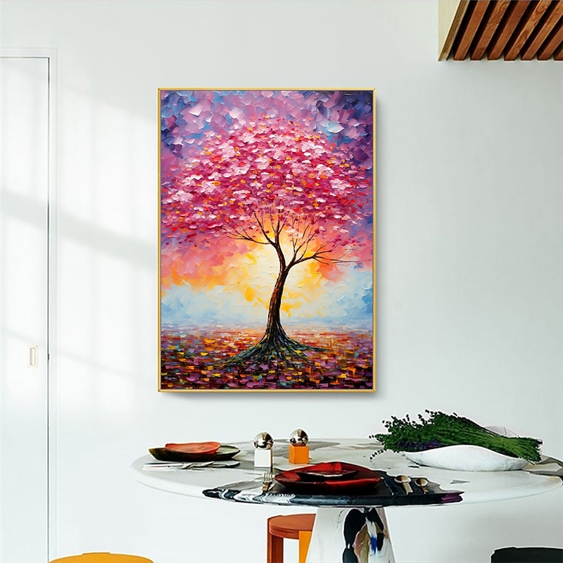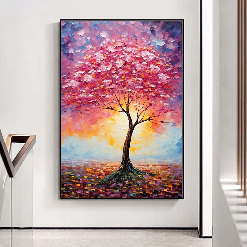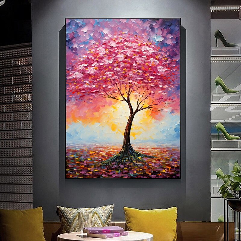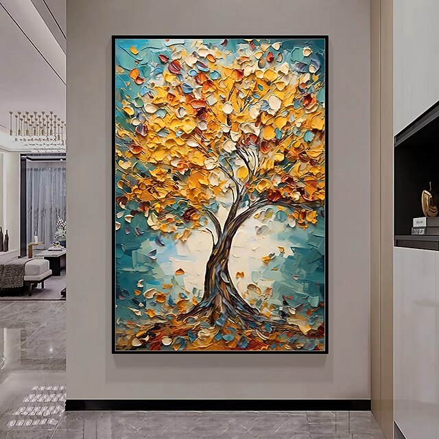 Mintura Handmade Color Texture Tree Oil Paintings On Canvas Wall Art Decoration recent-age Abstract Picture For Home Decor Rolled Frameless Unstretched Painting
